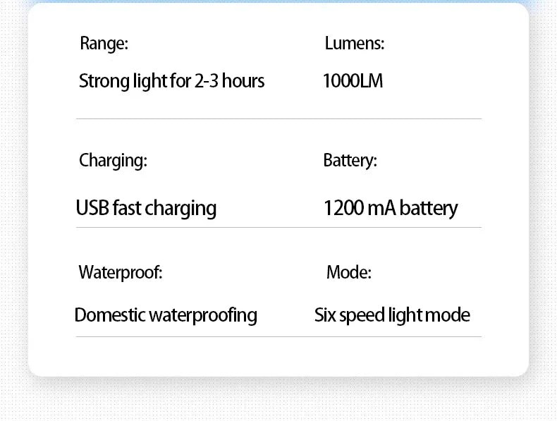 1.High Brightness Illumination - 1000 Lumens Brightness: provides powerful and clear illumination, ensuring that the road ahead is clearly visible in all lighting conditions.