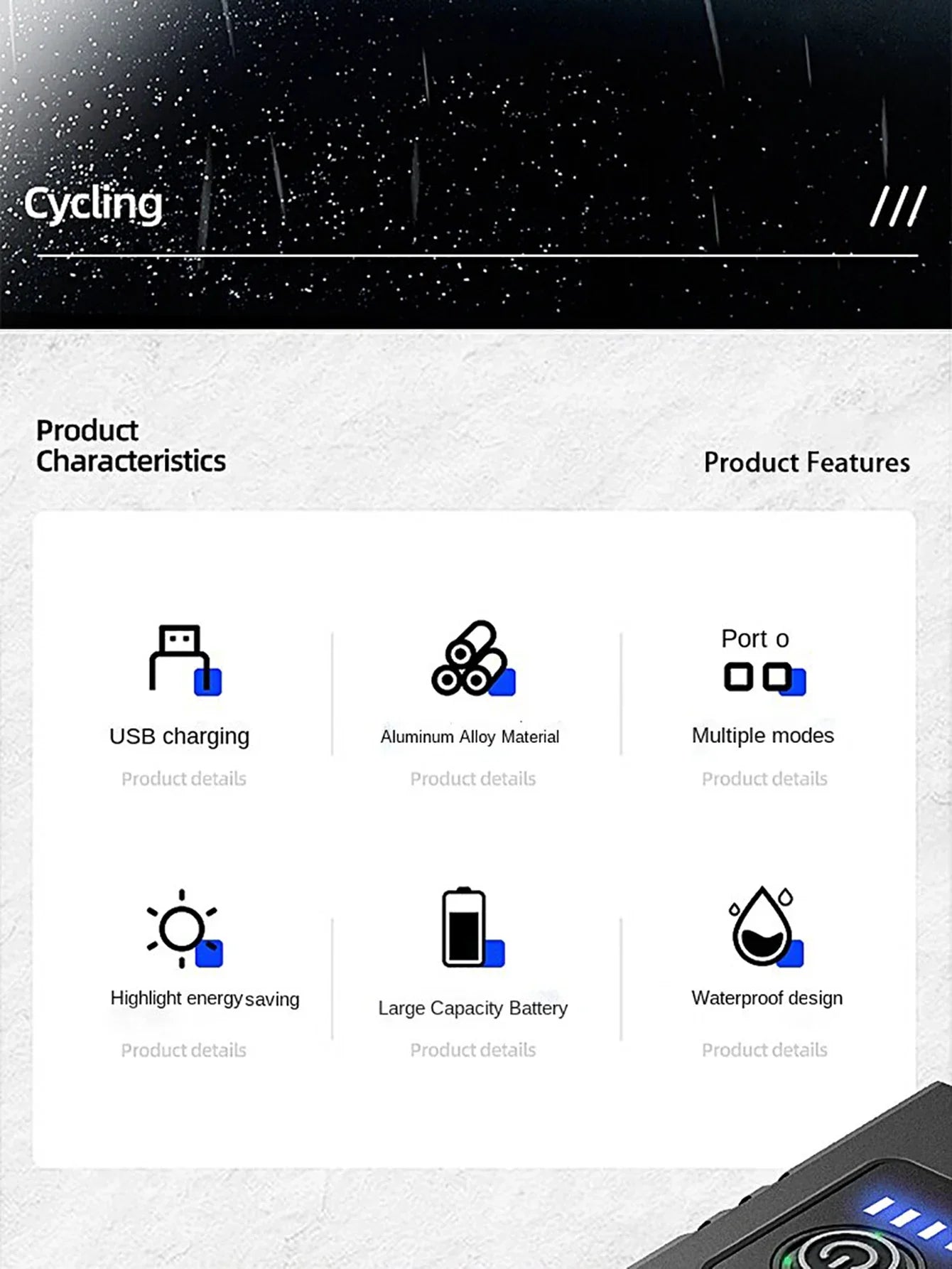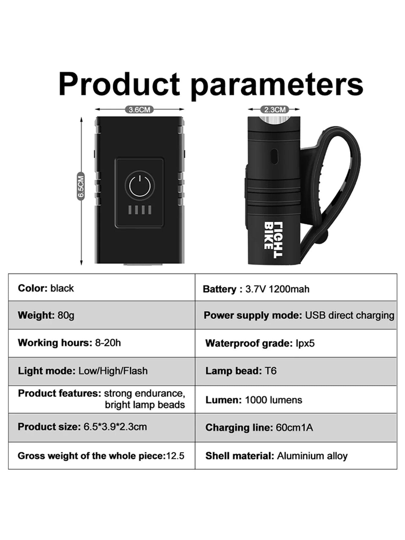 2T6 LED Bicycle Front Light 1000LM Aluminum Alloy Bike Light Headlight USB Rechargeable MTB Mountain Bicycle Lamp