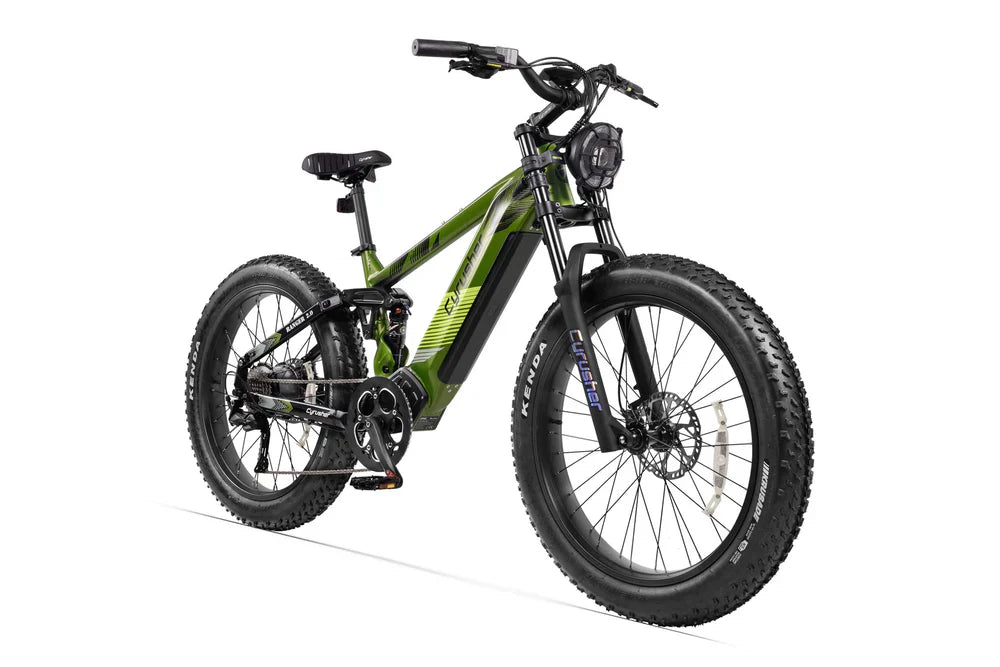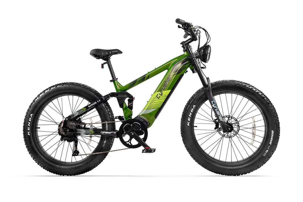 Discover the Cyrusher Ranger 2.0, a high-performance ebike with a 52V 250W motor, full suspension and advanced features such as integrated turn signals and a powerful headlight. Perfect for urban driving and off-road adventures. Discover now!