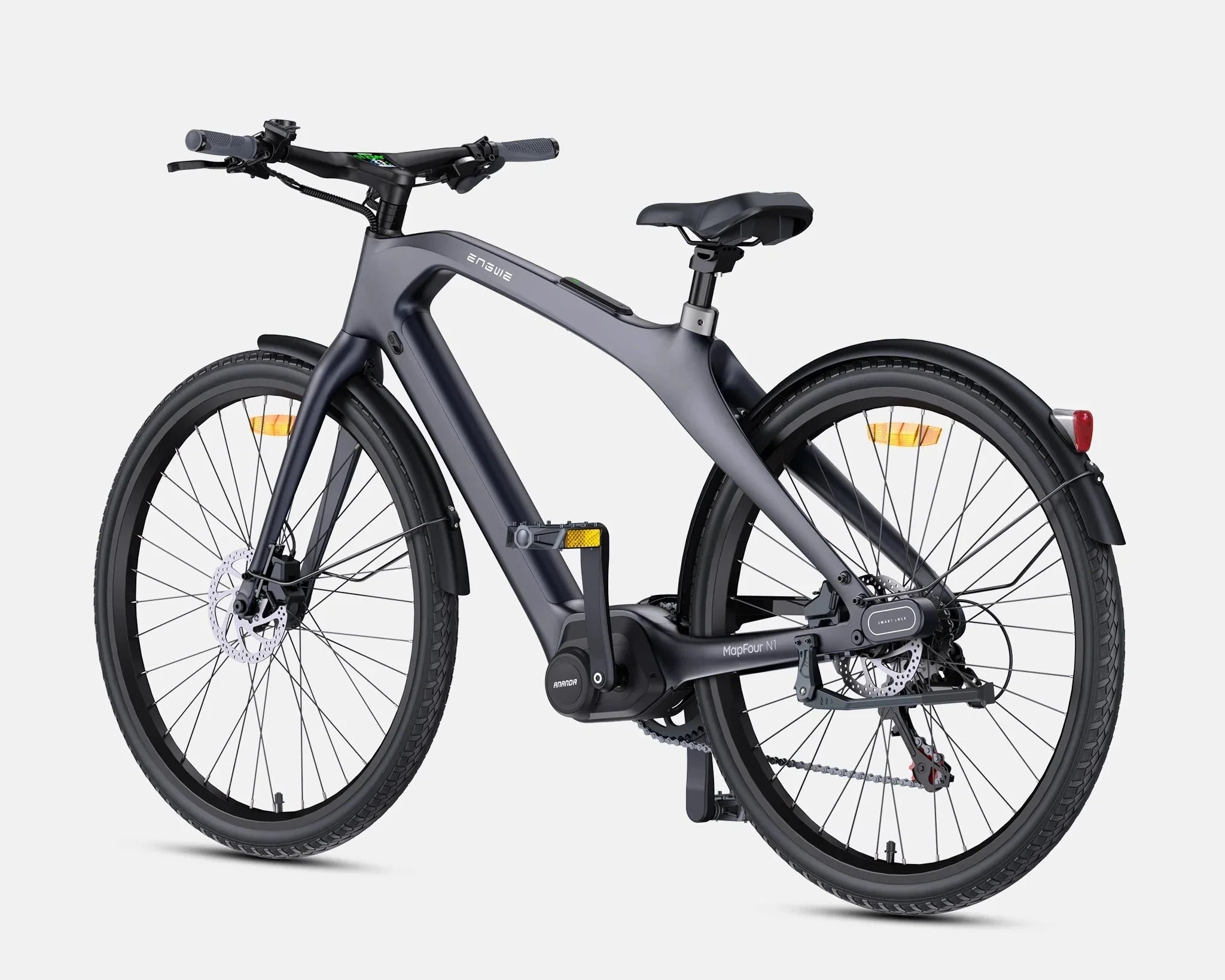 ENGWE MapFour N1 Pro electric city bike Equipped with an integrated ring lock, it is controlled via the display or app, auto-locking after 5 minutes of inactivity for seamless security and theft protection.