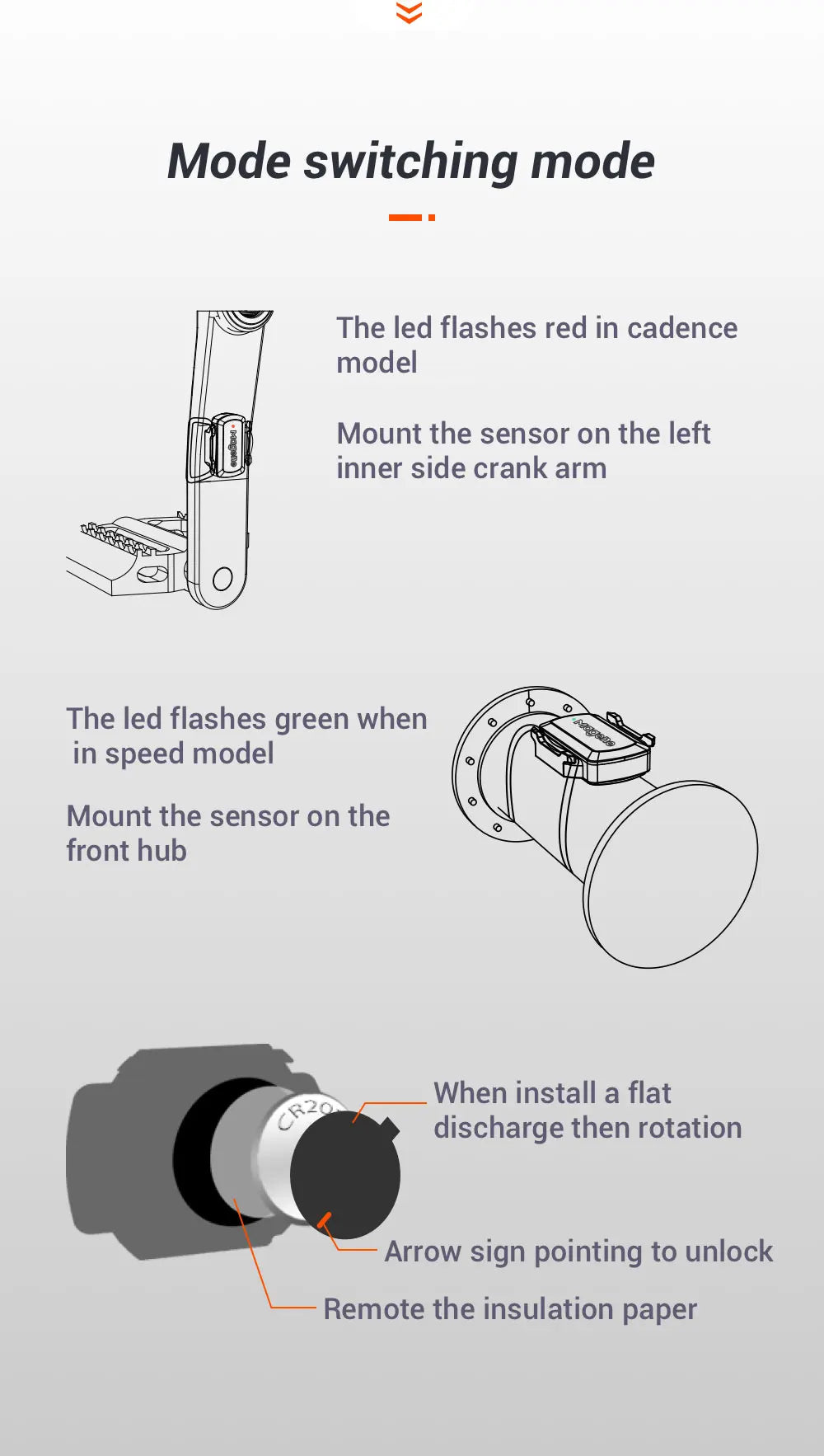 The first sensor which can be switched between speed and cadence modes by reinstalling battery in the world!