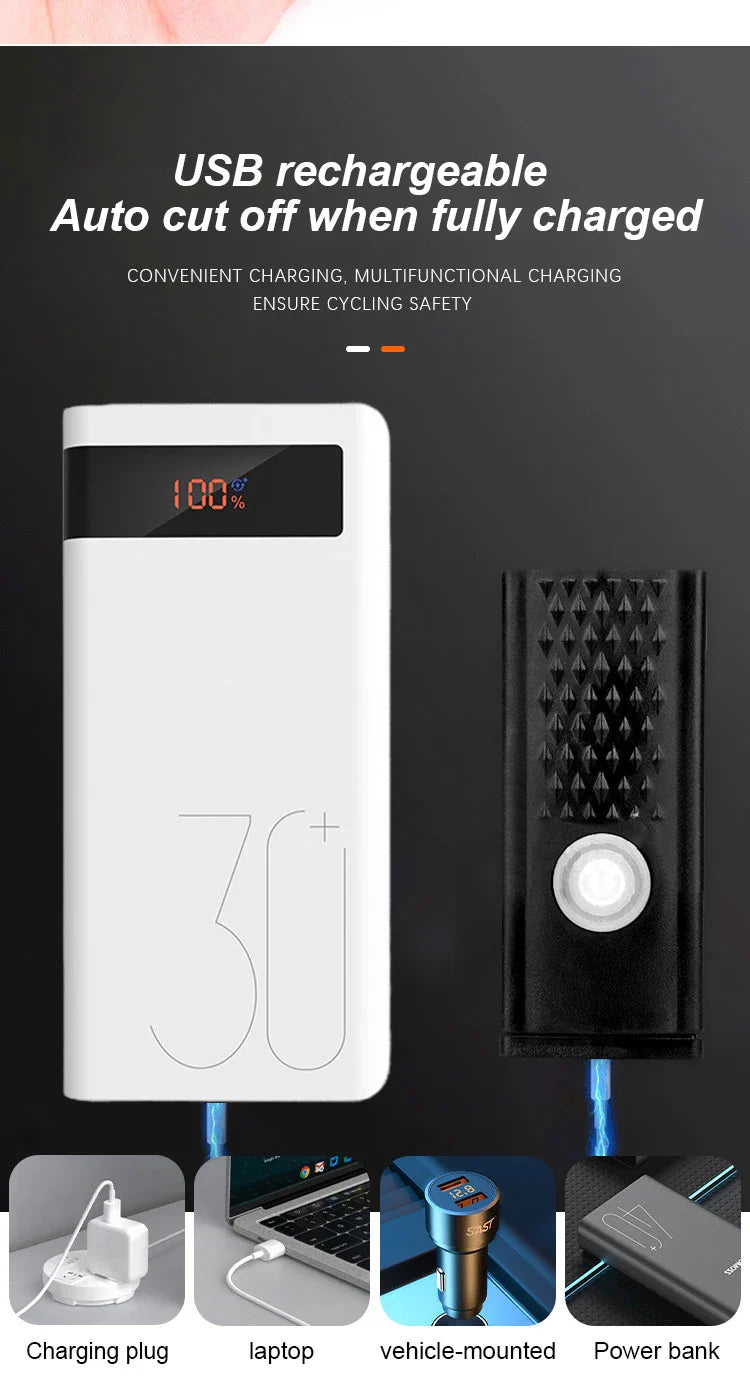 USB rechargeable bicycle taillight and auto cut off when fully charged.
