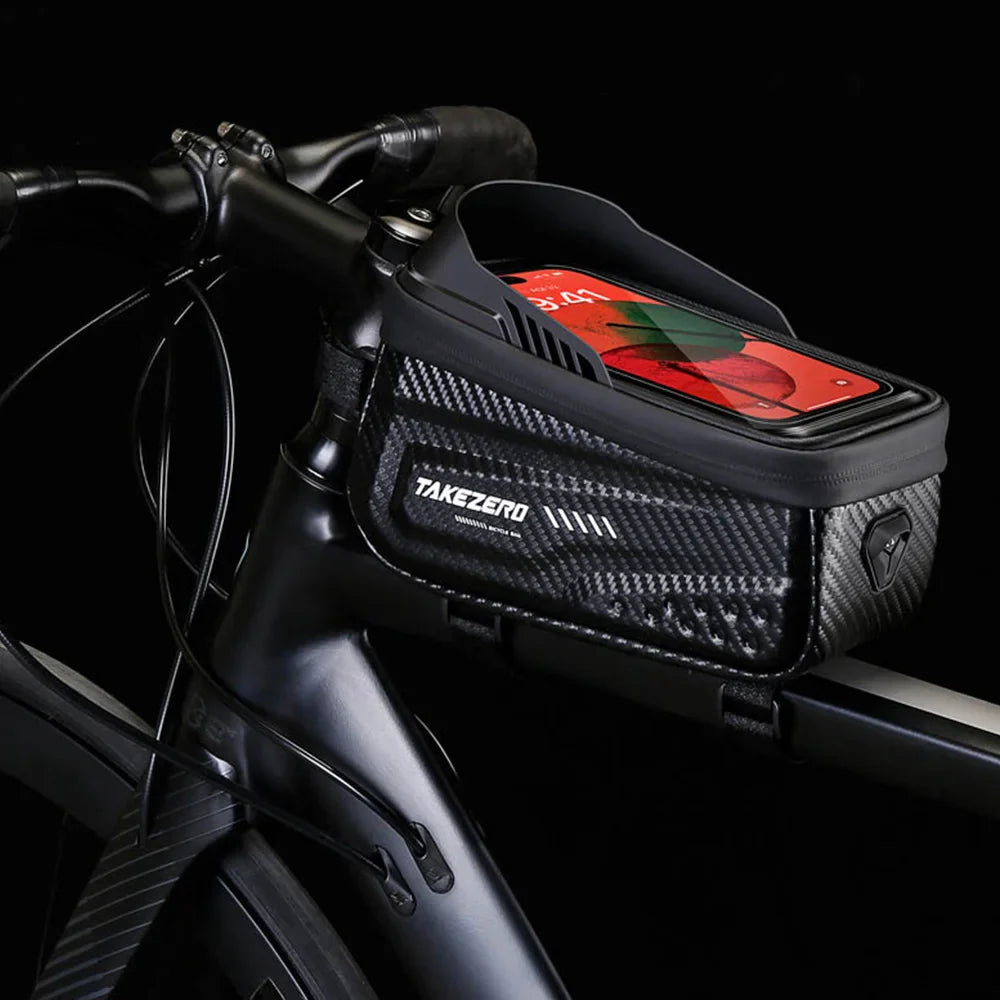 The top tube bicycle bag is made of waterproof polyester and features a double-layer fine decorative design. The waterproof protective cover is the perfect choice for rainy days and extreme conditions