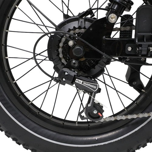 Powered by a 48V 500W motor, this fat tire electric bike offers impressive performance with 65Nm of torque. It effortlessly tackles steep inclines and rough trails, providing smooth acceleration and stability. Whether you're commuting or off-road exploring, the motor ensures reliable power across all terrains.