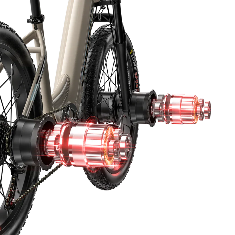 2000W dual Motor-Shengmilo S700 adult electric bicycle is equipped with high-speed dual brushless motors 1000W * 2, with a maximum speed of 25KM/H unlockable, allowing you to travel faster than ever. An electric bicycle with 80nm*2 torque is enough to traverse various terrains, including mountains, snow, sand and dirt roads, ensuring an excellent off-road riding and travel experience.