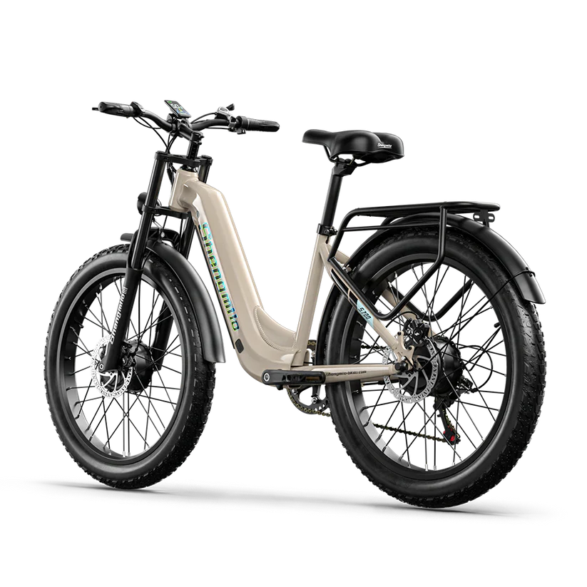 HIGH QUALITY RIDE-This electric bike provides an excellent riding experience with its professional suspension system and ergonomically comfortable saddle. Get through difficult roads or long journeys with peace of mind. The aluminum saddle and handlebars feature ergonomic grips for a relaxing riding experience. The 26-inch x 3.0 tires provide optimal grip on all surfaces including snow, road, beach, and mountains.
