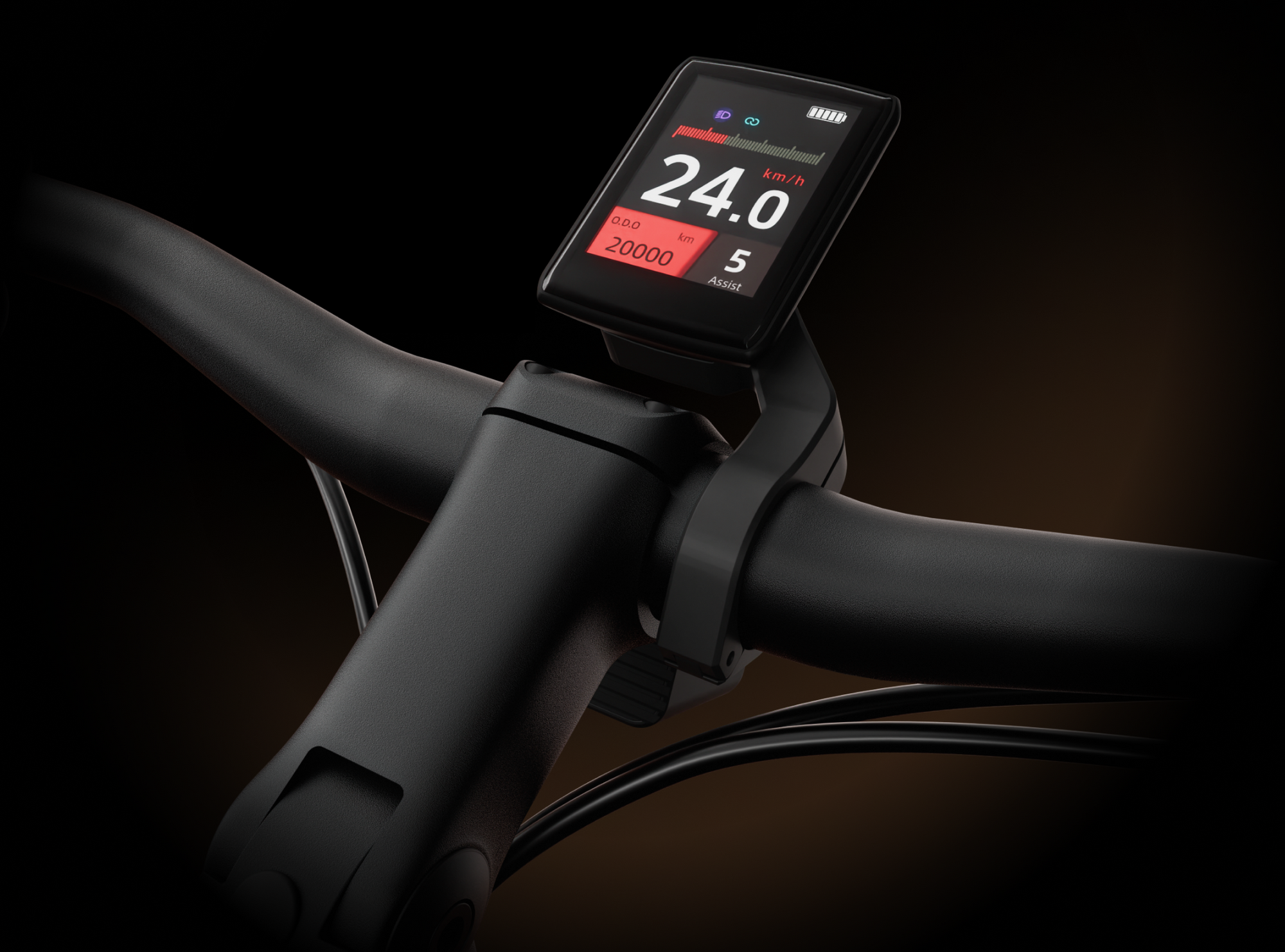 The robust mid-drive motor provides the power needed for steep slopes or carrying heavy loads. 80 Nm max torque.