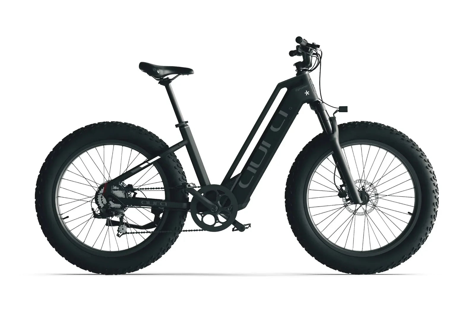 Comfort is a major highlight of the Cyrusher Aura. It comes equipped with a coil-spring suspension fork, which effectively absorbs shocks and vibrations from uneven surfaces, ensuring a smoother ride. The 26" x 4.0" Chaoyang fat tires further enhance comfort and stability, providing excellent grip on various terrains including sand, gravel, and wet roads. These wide tires not only improve traction but also add to the bike’s rugged aesthetic.