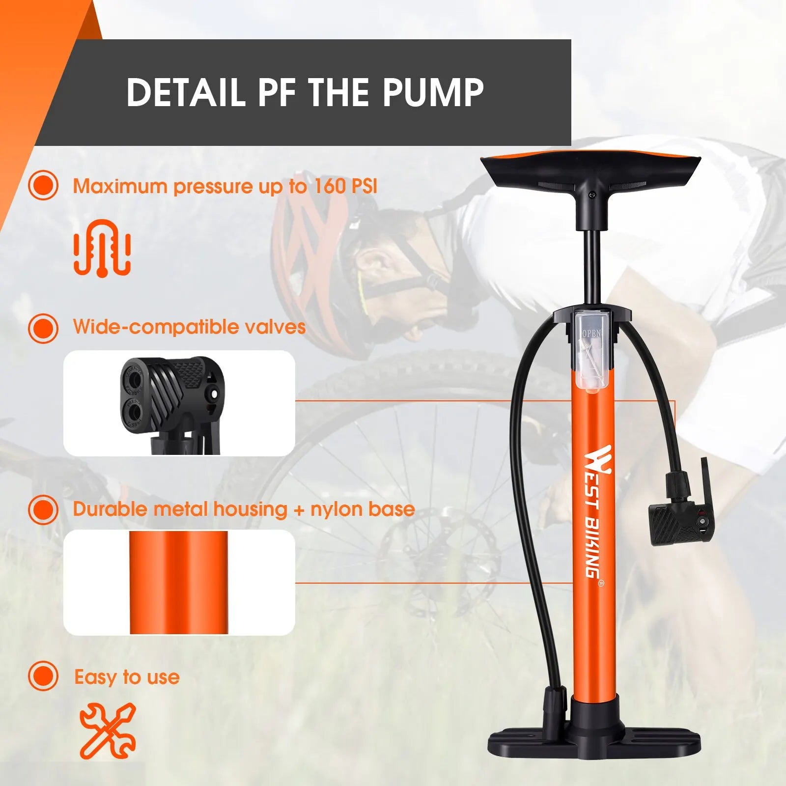 1.Maximum pressure up to 160 PSI
